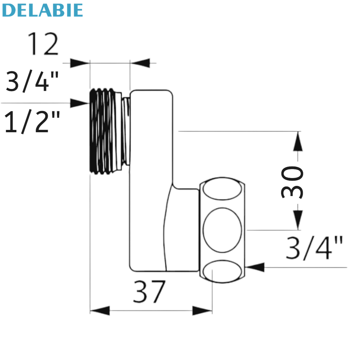 DELABIE 853220.2P Raccord M 1/2" ou M 3/4" X F 3/4" Excentré de 35 mm.