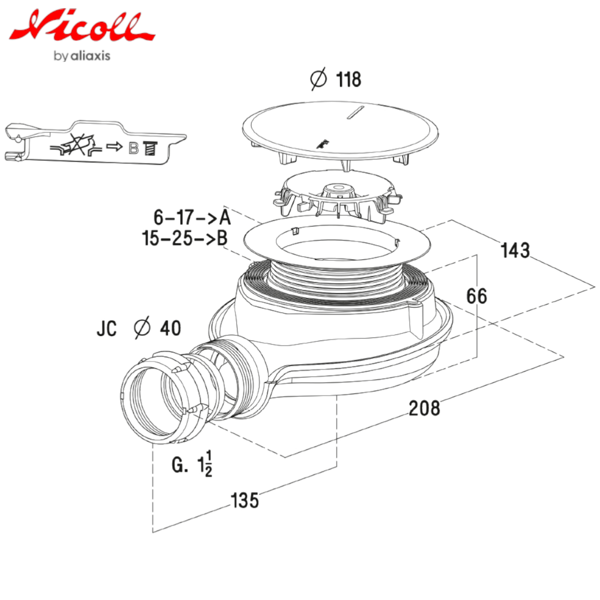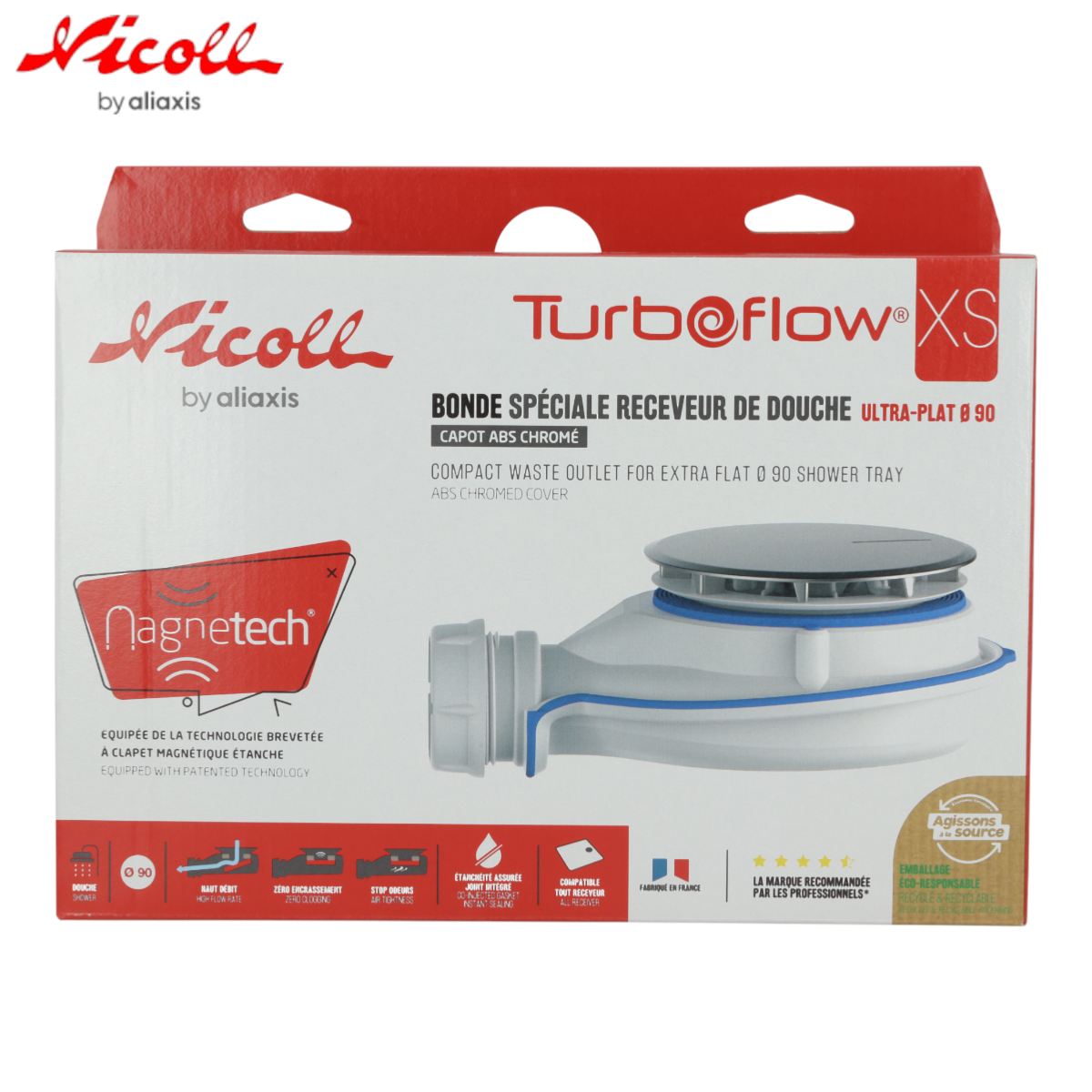 NICOLL 0205800 Bonde receveur de douche TURBOFLOW®-XS Magnetech®, Ø 90 mm, sortie Ø 40 mm