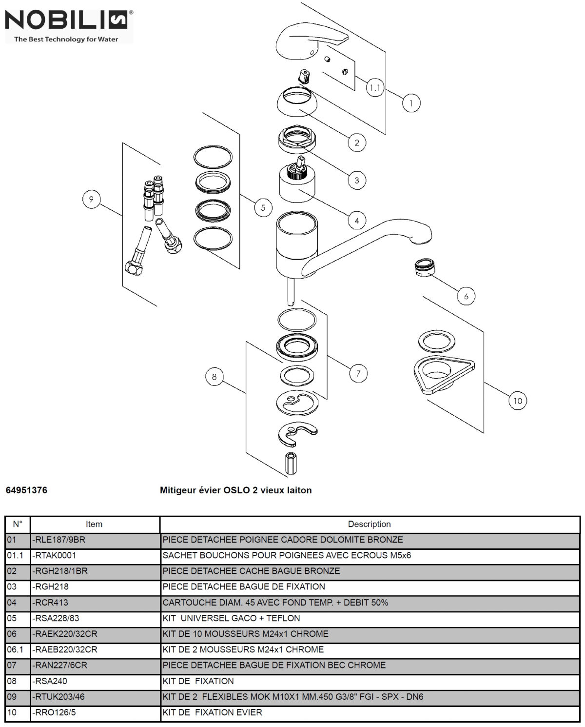 Exemple sur robinet mitigeur évier Nobili OSLO 2.