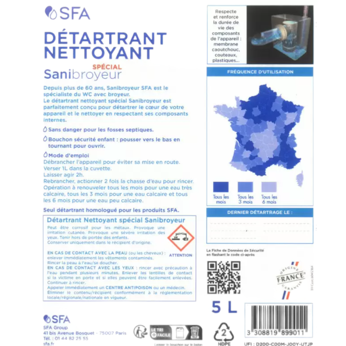 • Le Détartrant SFA Spécial SANIBROYEUR permet de supprimer le tartre tout en respectant les composants internes de votre appareil.